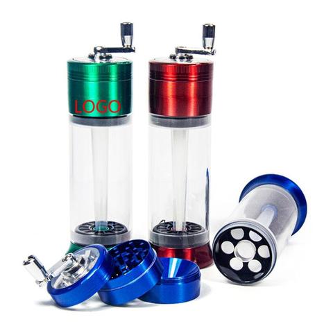 Molinillo de hierbas secas con manivela manual de 52mm con logotipo personalizado, molinillo de tabaco integrado de plástico y aleación de Zinc para cigarrillos