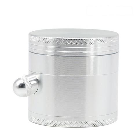 Molinillo de hierbas de aleación de aluminio de 4 capas de lujo al por mayor, herramienta dispensadora lateral de 63mm de diámetro para especias de tabaco, nuevo diseño de salida lateral